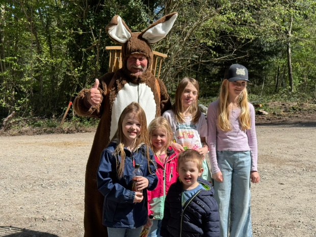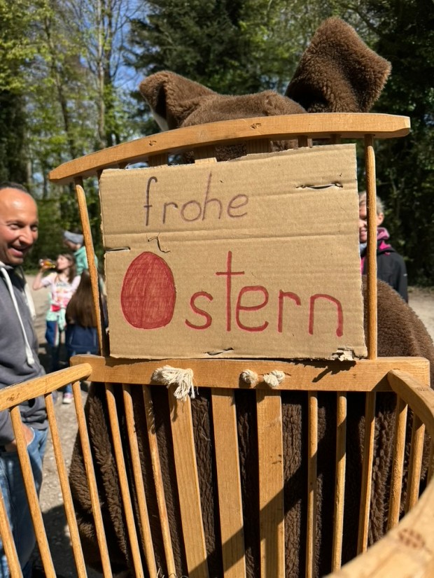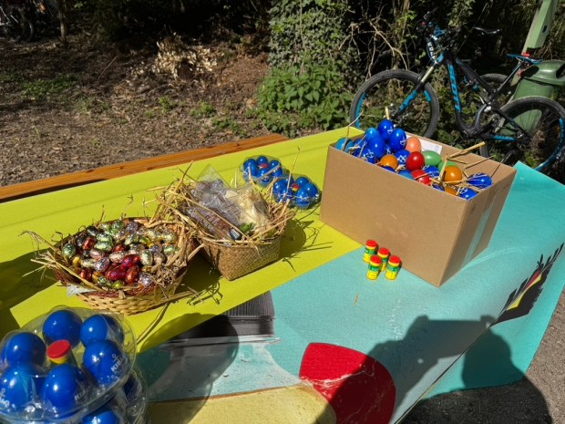Nach und nach trafen die Teilnehmer am Ziel ein und wurden vom dorfeigenen Osterhasen mit einer kleinen Überraschung empfangen.